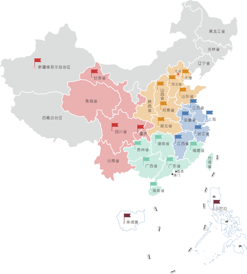 主要地区:上海,江苏,浙江,安徽,湖北,福建,广东等