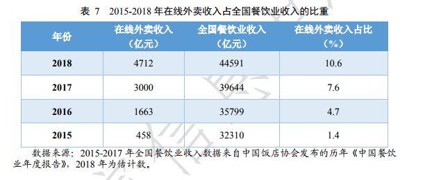 其中,2015-2018 年3年时间,我国在线外卖收入占餐饮业收入的比重从1.4%提高到10.6%;在线外卖收入年均增速约为 117.5%,是传统餐饮业的 12.1倍。